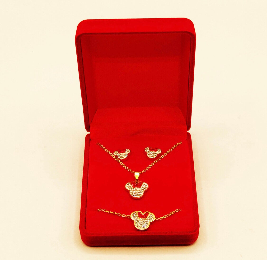 Coffret Collier,Bracelet et boucles d'oreilles Minnie